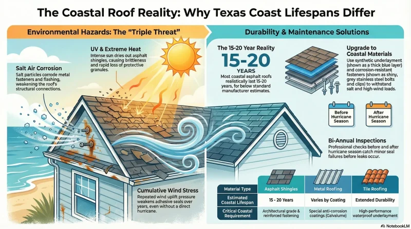 Several often-overlooked factors contribute to premature roof failure along the Texas Coast.